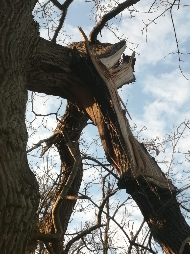 Extreme Witterungsereignisse wie Sturm, Starkregen oder Schneelasten können zum Brechen einzelner Äste oder ganzer Kronenteile, bis hin zum Umstürzen eines Baumes führen.